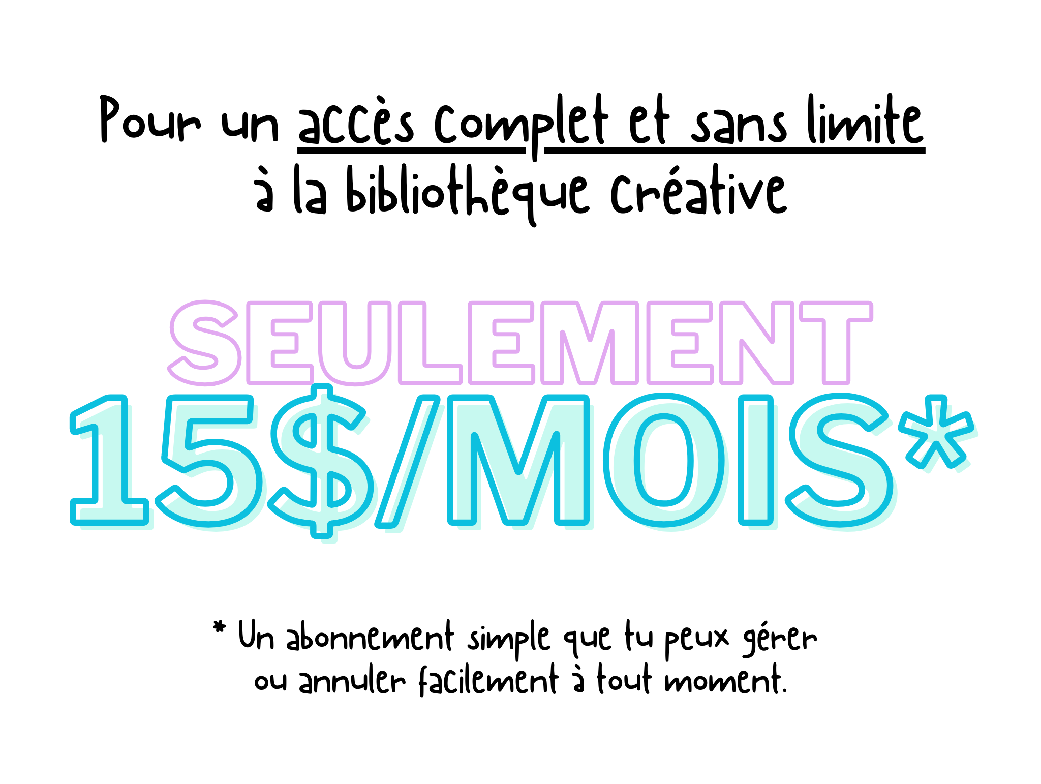 Je suis consciente que certaines périodes peuvent être plus serrées que d’autres pour les familles. C’est pourquoi il est possible de se désabonner sans perdre son compte. Même sans abonnement actif, tu pourras continuer d’accéder à une version restreinte de la bibliothèque créative, avec quelques idées et contenus gratuits.