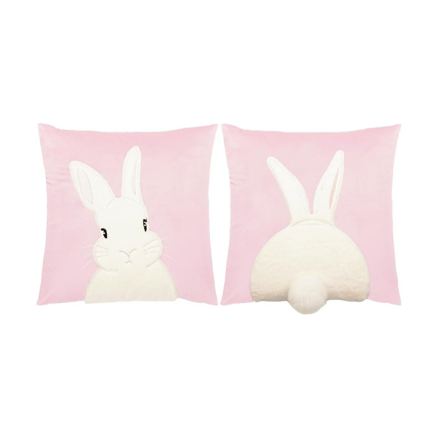 2 housses de coussin décoratives en velours rose avec un motif lapin de Pâques (45,7 x 45,7 cm).