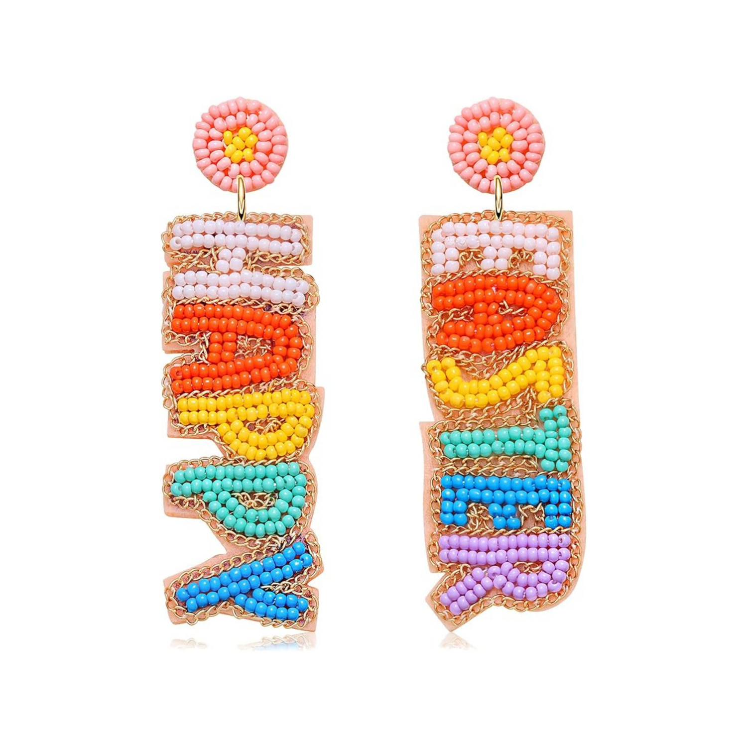 Boucles d'oreilles pendantes « Happy Easter », fabriquées avec la technique Miyuki.