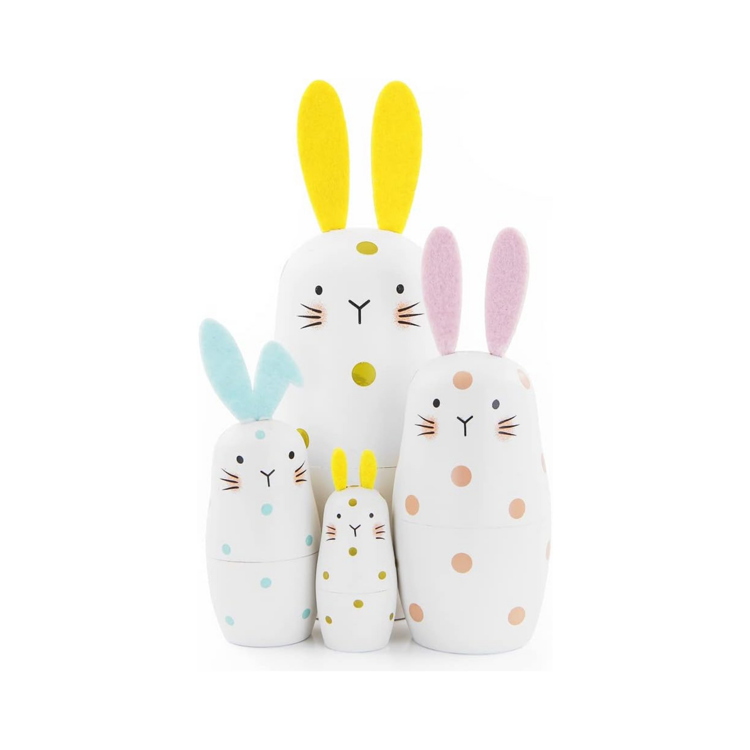 4 poupées gigognes Lapin en bois, peintes à la main.