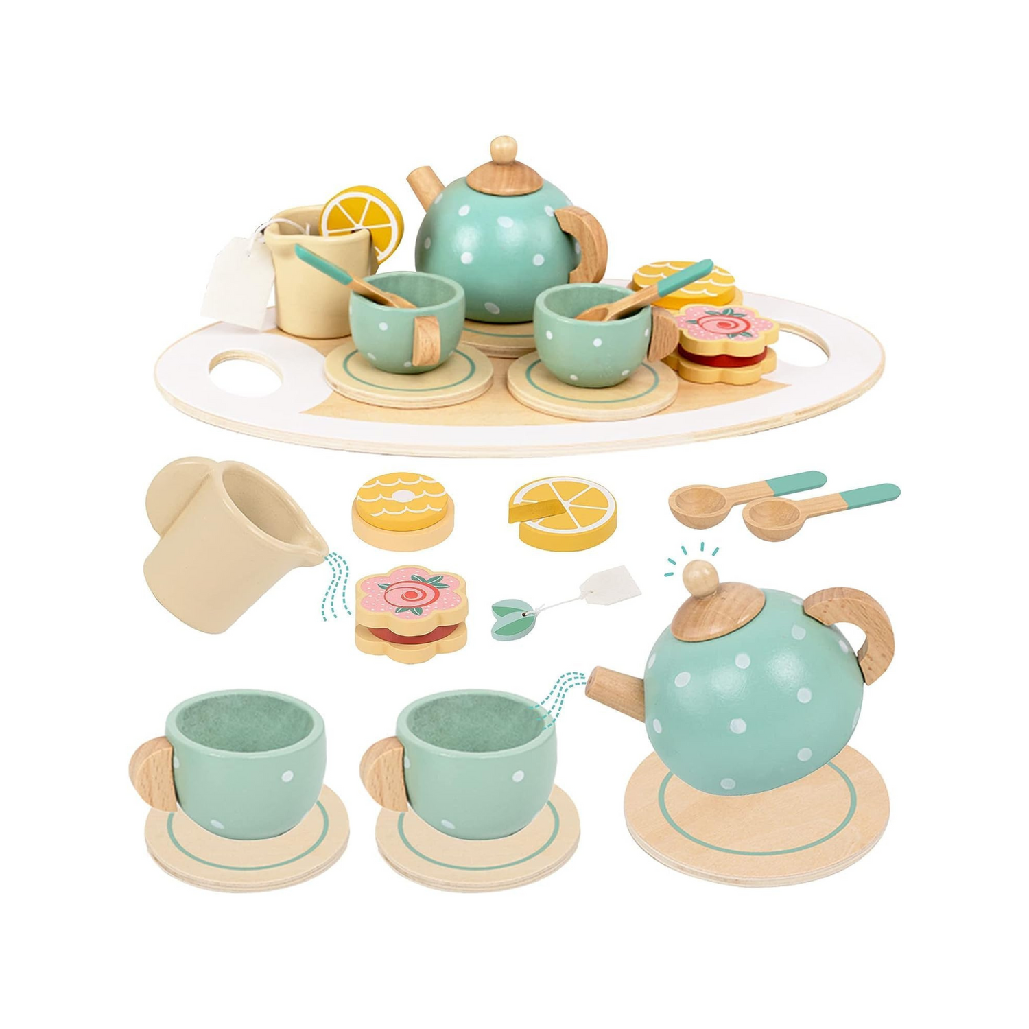 Ensemble de thé en bois pour enfants qui adorent les jeux de rôles.
